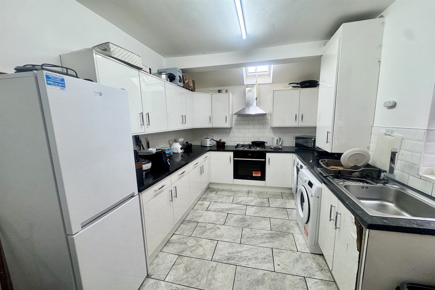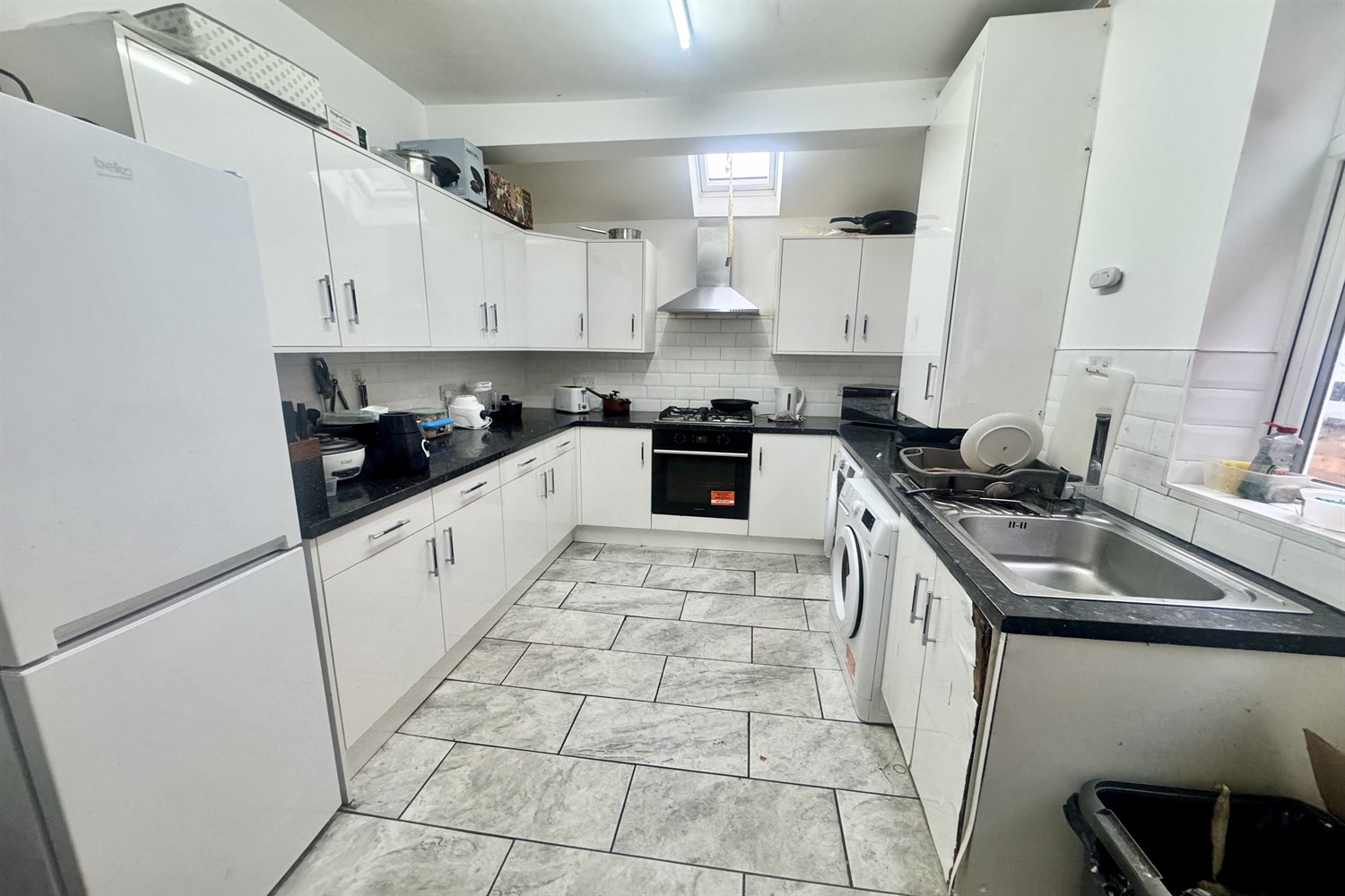 Shared kitchen and communal areas.